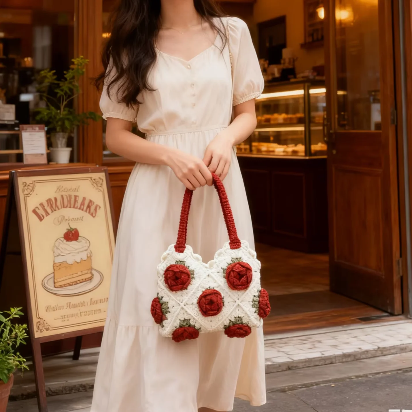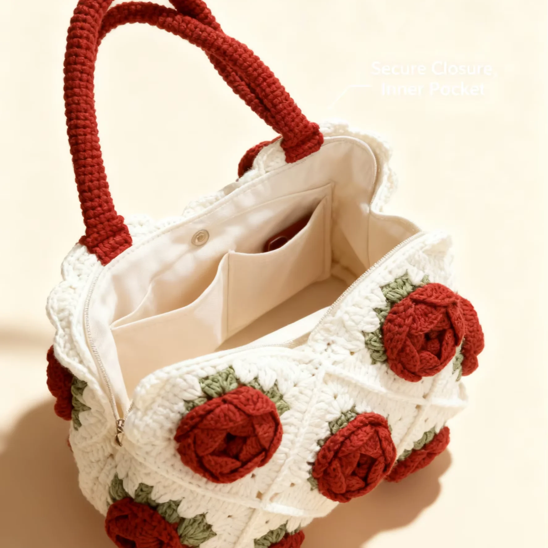 Hot Selling Women’s Handmade Crocheted Bag Rose Series Grandmother Fashionable Handbag Embroidery Open for Leisure Holidays